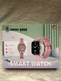 - 1x CROWN Q800 Smartwatch (Pink Strap + Extra Black Strap)