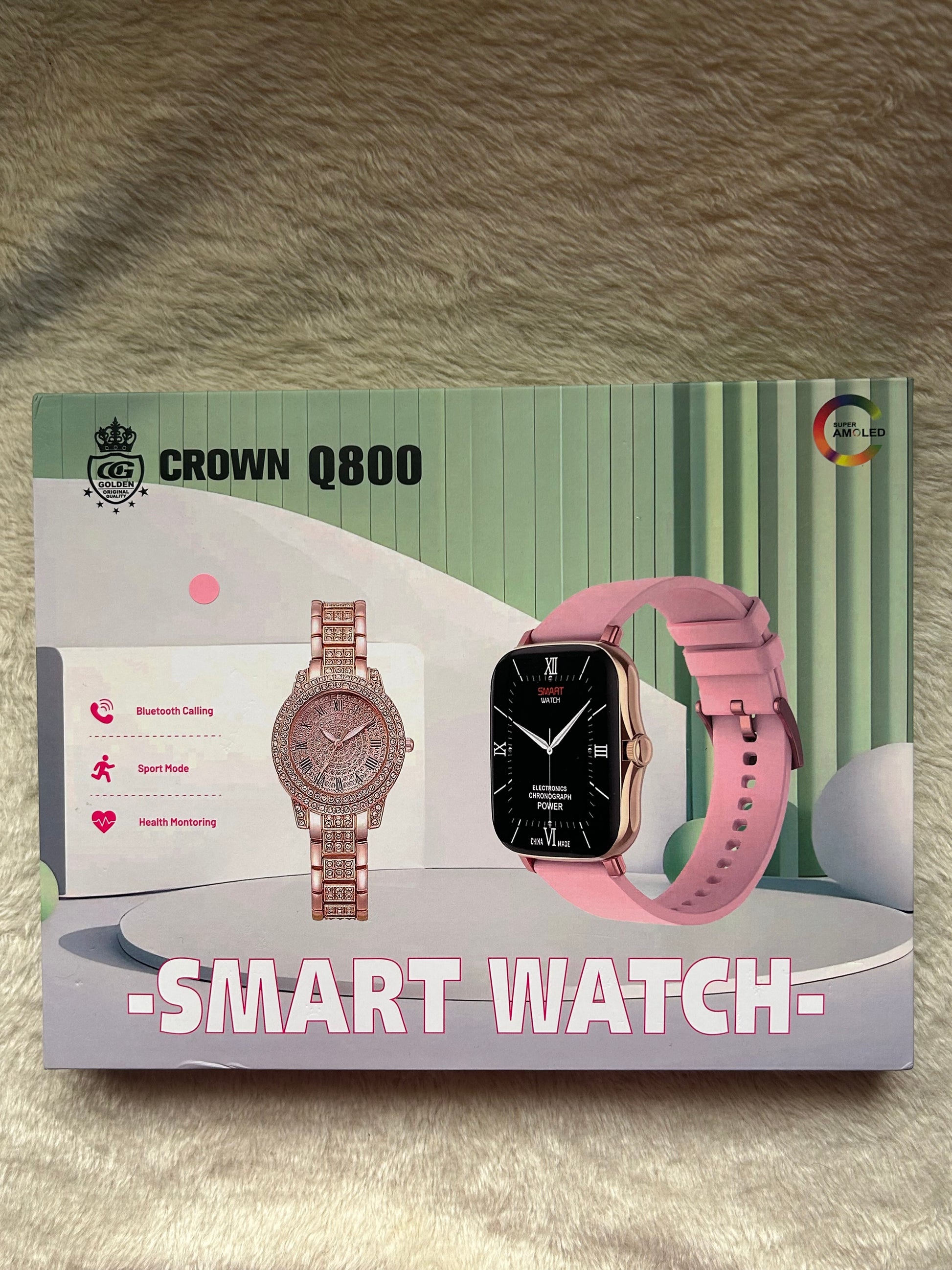 Bring sparkle to your wrist and stay connected in style with the Crown Q800 Smart Watch Set.